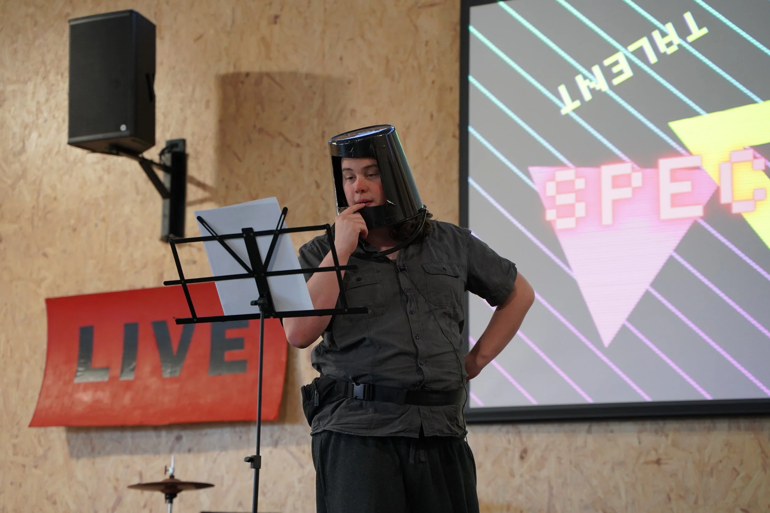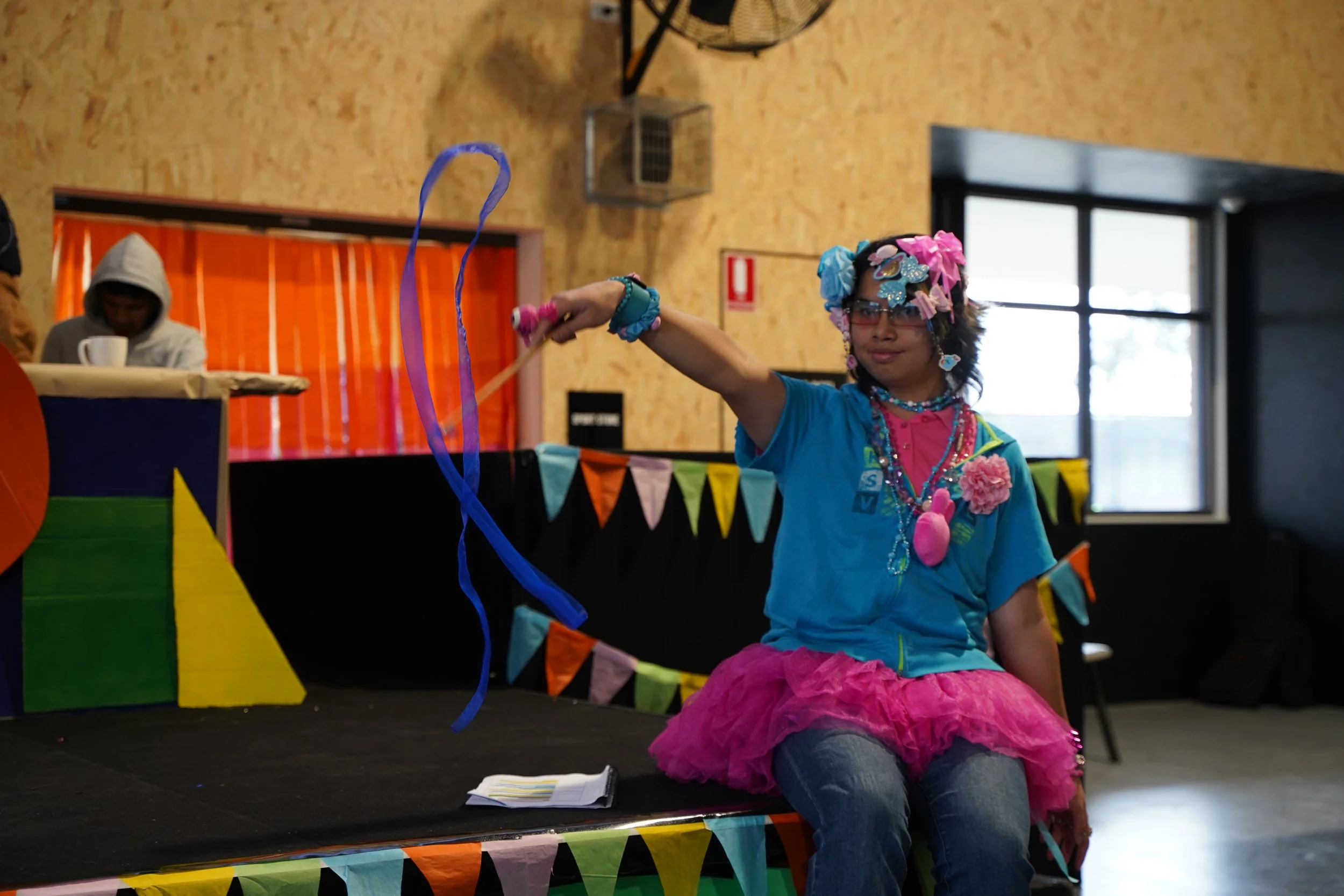 Developed over twenty days across two school terms, the project grew slowly and collaboratively. Briony and Zak spent time with students exploring ideas, building confidence, and shaping the show together. Between visits, students continued rehearsing independently, taking ownership of their acts and guiding the creative process.